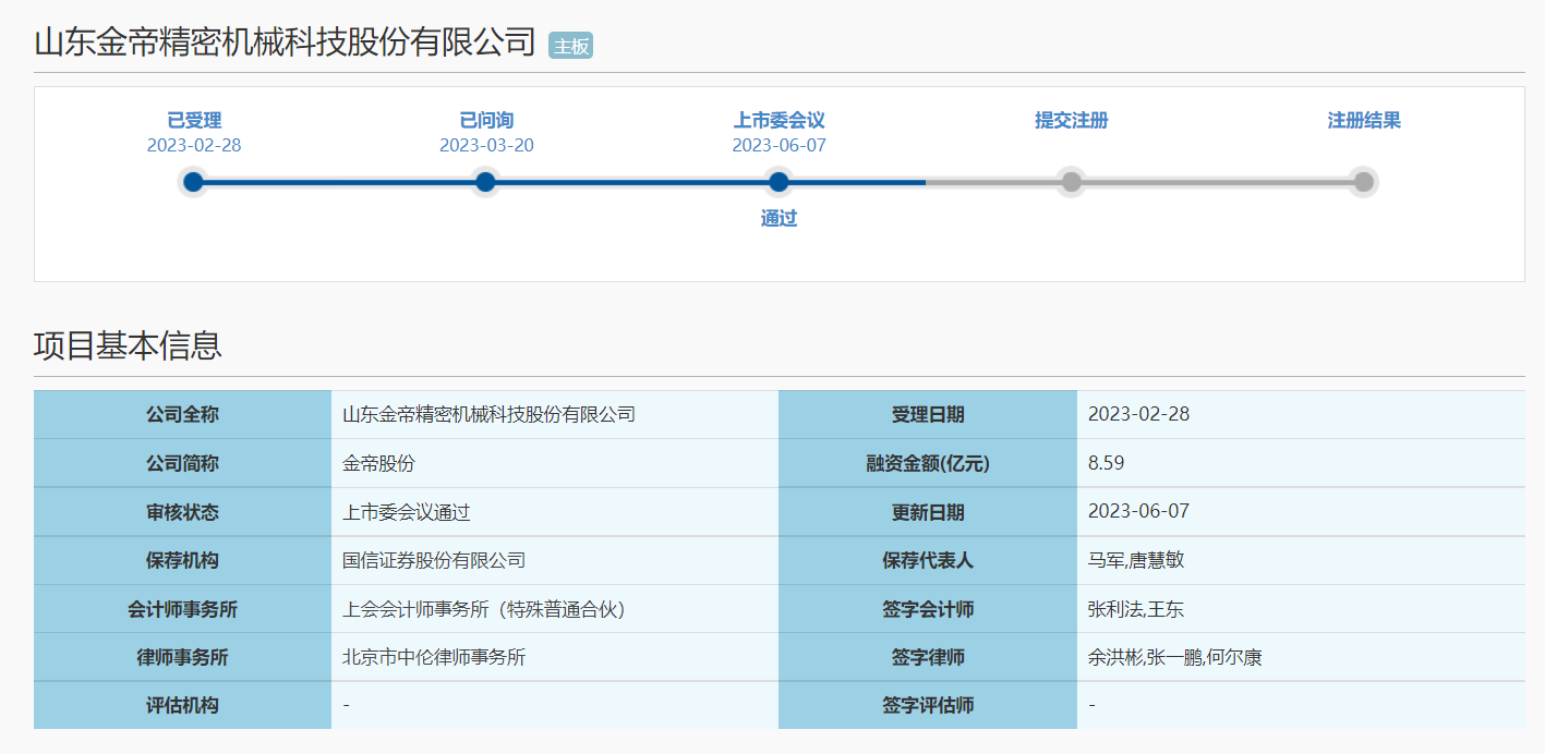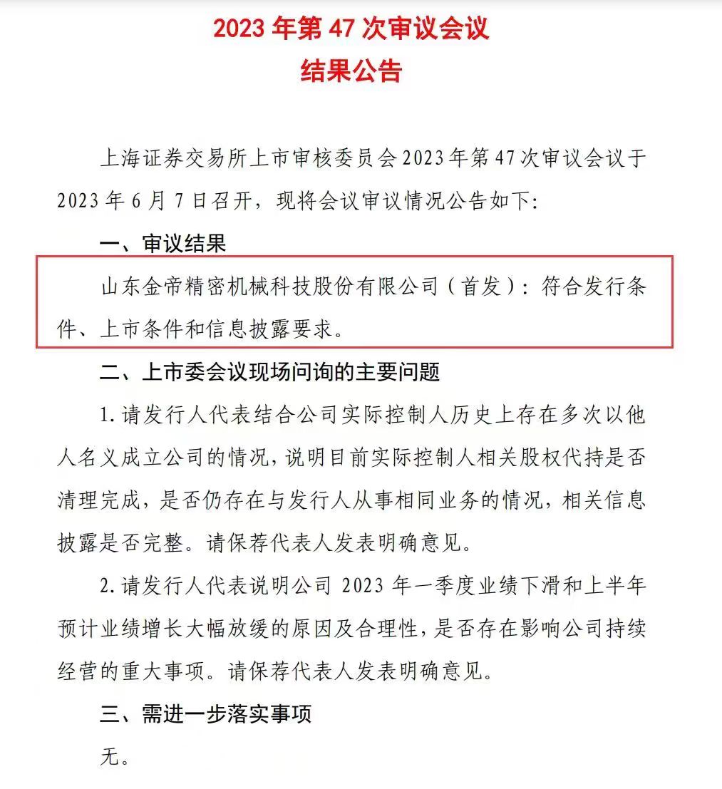 本所服务的客户 山东金帝精密机械科技股份有限公司,在2023年6月7日通过上海证券交易所上市审核委员会2023 年第47次审议会议顺利过会!
