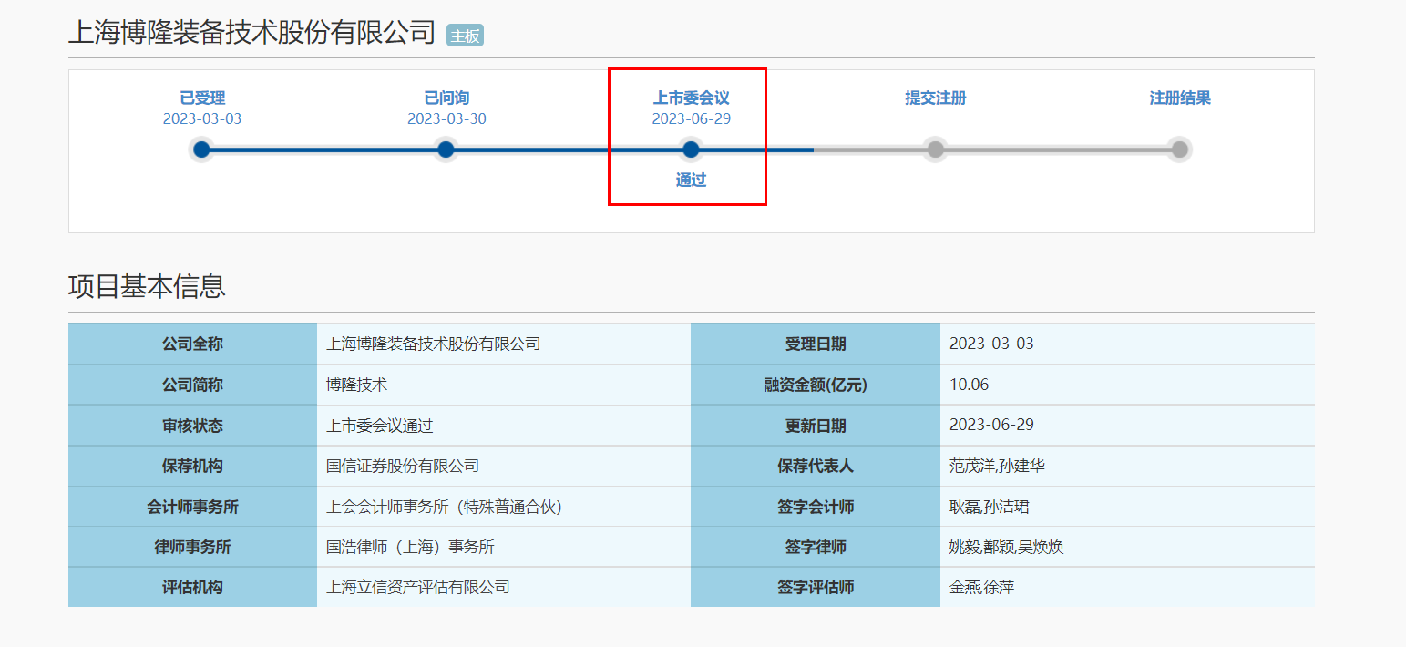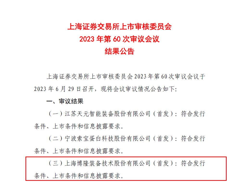 本所服务的客户上海博隆装备技术股份有限公司,在2023年6月29日通过上海证券交易所上市审核委员会2023年第60次审议会议顺利过会!