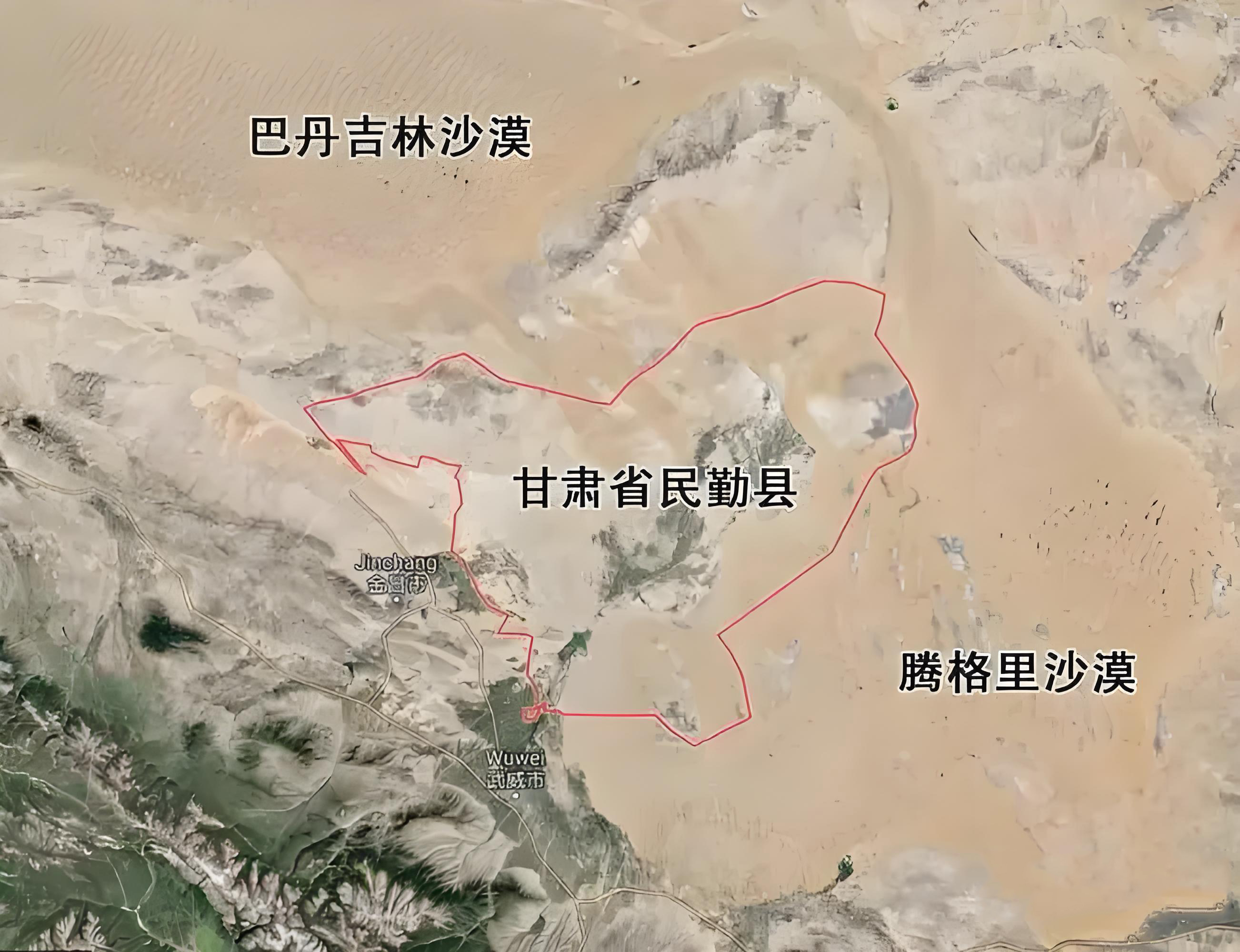 民勤县隶属甘肃省武威市,位于河西走廊东北部,石羊河流域下游,南临凉州区,西南与金昌市相连接,东西北三面被巴丹吉林和腾格里两大沙漠包围。全域总面积约1.59万平方公里,荒漠化和沙化土地面积约占九成。并且多年以来,民勤县年均降水量113毫米,年均蒸发量超2600毫米。