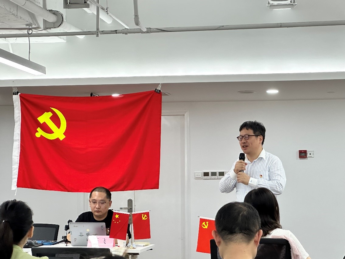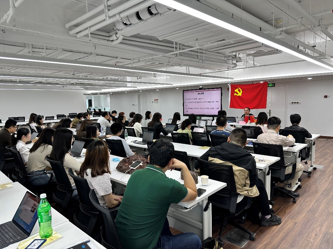 上午活动中,我们有幸邀请到了中共中央党校法学博士、同济大学大中小思政一体化研究员王飞老师作为本次主题党日活动的主讲嘉宾。王老师从中央对学习的要求(为什么学)展开、深入分析了习近平新时代中国特色社会主义思想的理论内涵(学什么)、并详尽阐述了习近平新时代中国特色社会主义思想的历史溯源(从哪里来),用通俗易懂的语言从三个方面为我们详细解读了习近平新时代中国特色社会主义思想的重要意义,大家听得津津有味,认真地做着学习笔记。通过这次党课,我们更加深刻地认识到了习近平新时代中国特色社会主义思想的科学内涵和实践要求,进一步坚定了对中国特色社会主义道路的信心。