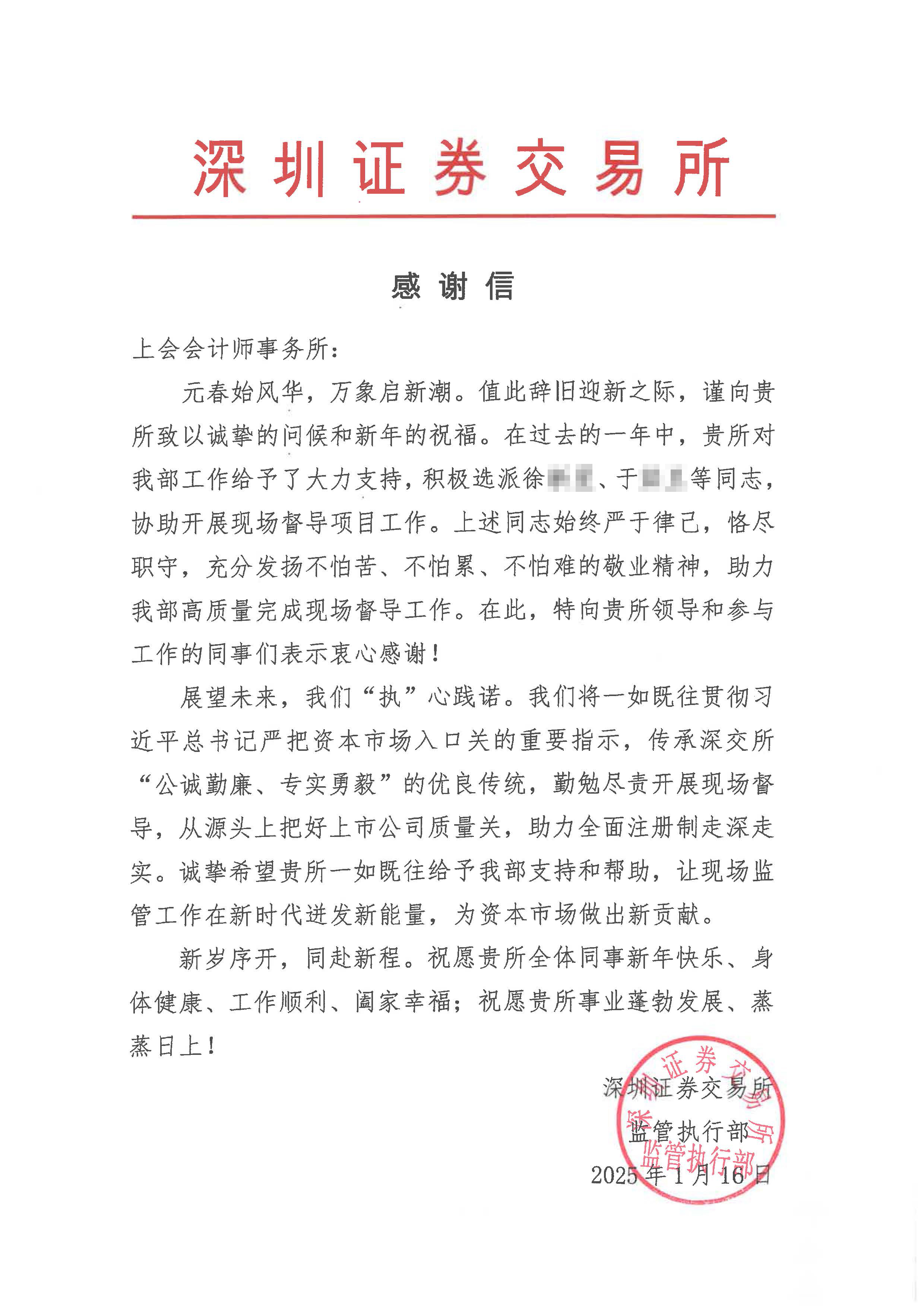 感谢中国注册会计师协会、财政部大连监管局及深圳证券交易所监管执行部的信任,给予皇冠直营参与各项检查、督导项目等工作的机会。皇冠直营对这份信任深感荣幸,并认识到所肩负的责任重大。
